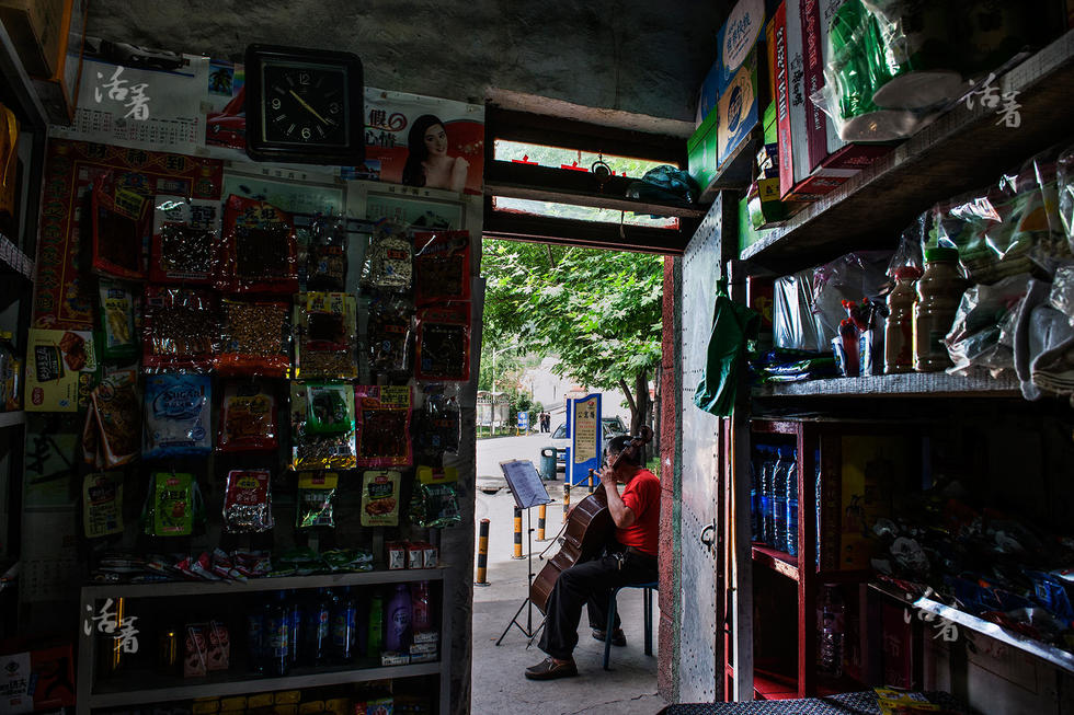 68歲退休工人王良坤過去在礦工會工作,退休后開了一家小賣店。老人從10多歲就喜歡拉大提琴,小店沒有顧客光顧,老人就在小店門口拉琴來消磨時間。如今礦上經(jīng)濟(jì)不景氣,許多商店都關(guān)了門。 (來自:騰訊圖片)