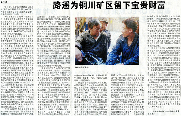 ★5月18日“中國煤炭報(bào)”八版刊發(fā)《路遙為銅川礦區(qū)留下寶貴財(cái)富》(作者:王蓬)