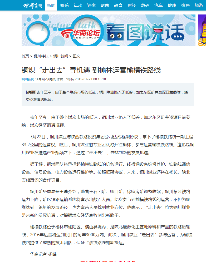華商網(wǎng) 2015年7月23日 銅川新聞欄目
