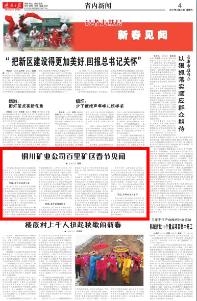 羊年新春,煤城銅川處處呈現(xiàn)著喜慶祥和的節(jié)日氣氛,銅川的百里礦區(qū)也到處洋溢著歡樂與溫馨。為探訪常年忙碌在千尺井下、地心之旅的礦工們放松心情、歡度新春、共享團(tuán)圓的節(jié)日生活,大年初七,記者走進(jìn)了銅川的百里礦區(qū)。