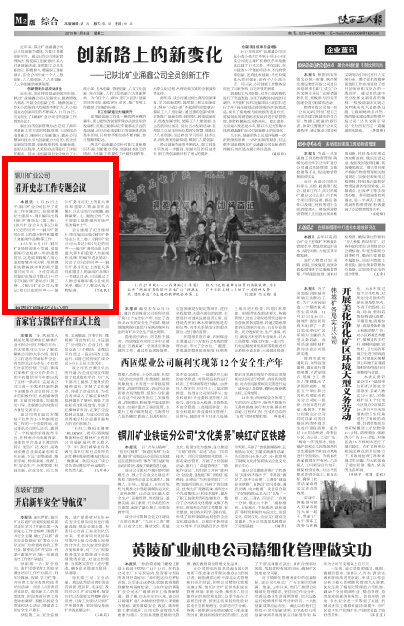 2015年11月1日,銅川礦務(wù)局將迎來60華誕,也是銅煤歷史發(fā)展80年的重要時間,這是展現(xiàn)銅煤人用心血和智慧開采光明,用拼搏和執(zhí)著鑄就豐碑的兩個重要時間節(jié)點。公司黨政決定編印出版總字?jǐn)?shù)達(dá)130萬字的《銅川礦務(wù)局志》(第二卷)、《銅川礦業(yè)公司大事記》和《歷史的回聲——銅川礦務(wù)局歷史上的重大事件和重要人物新聞作品集》,以此總結(jié)歷史精髓,鼓舞凝聚人心,提振公司廣大干部職工戰(zhàn)勝煤炭市場嚴(yán)冬的精神士氣。