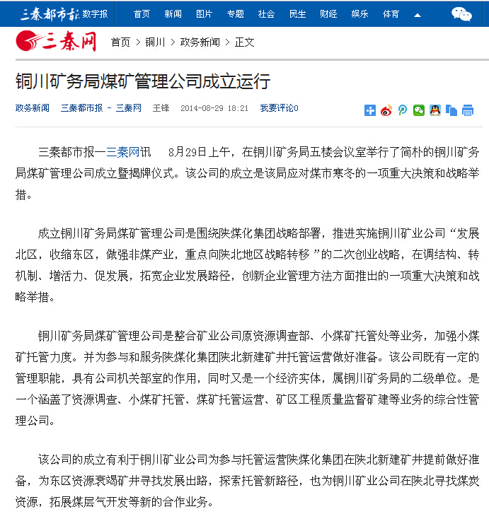 成立銅川礦務(wù)局煤礦管理公司是圍繞陜煤化集團戰(zhàn)略部署,推進實施銅川礦業(yè)公司“發(fā)展北區(qū),收縮東區(qū),做強非煤產(chǎn)業(yè),重點向陜北地區(qū)戰(zhàn)略轉(zhuǎn)移”的二次創(chuàng)業(yè)戰(zhàn)略,在調(diào)結(jié)構(gòu)、轉(zhuǎn)機制、增活力、促發(fā)展,拓寬企業(yè)發(fā)展路徑,創(chuàng)新企業(yè)管理方法方面推出的一項重大決策和戰(zhàn)略舉措。