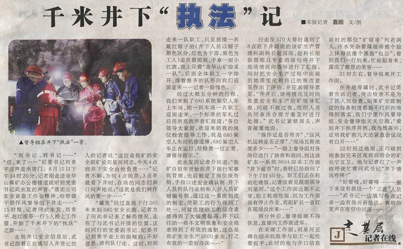 ●9月9日“陜西日報”第五版刊發(fā)《千米井下“執(zhí)法記”》