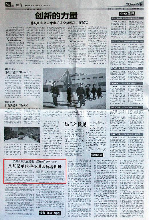 近期以來,陜煤化集團各基層單位紛紛舉辦了通訊員培訓(xùn)班,進一步提高了通訊員的新聞寫作能力。