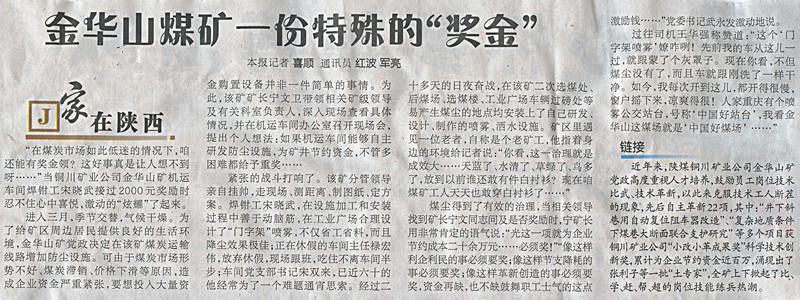 ★ 7月26日“陜西日報”刊發(fā)《金華山煤礦一份特殊的獎金》