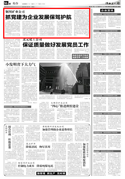 陜西工人報(bào) 2013年7月9日 煤業(yè)二版 銅川礦業(yè)公司切實(shí)按照“圍繞中心抓黨建、抓好黨建促發(fā)展”的工作思路,以科學(xué)發(fā)展觀為統(tǒng)領(lǐng)、以理論建設(shè)為根本、以能力建設(shè)為重點(diǎn)、以作風(fēng)建設(shè)為基礎(chǔ)、以制度建設(shè)為保證,為推動(dòng)企業(yè)改革發(fā)展穩(wěn)定起到了保駕護(hù)航的作用。牢固樹立“學(xué)習(xí)工作化、工作學(xué)習(xí)化”的理念,努力建設(shè)學(xué)習(xí)型領(lǐng)導(dǎo)班子,先后研究制定了《關(guān)于進(jìn)一步加強(qiáng)各級(jí)領(lǐng)導(dǎo)干部理論學(xué)習(xí)的實(shí)施意見》等制度,認(rèn)真學(xué)習(xí)貫徹黨的路線方針政策,集團(tuán)公司重要會(huì)議精神和重大戰(zhàn)略部署以及有關(guān)科學(xué)發(fā)展觀的系列論述等,組織開展了“加快發(fā)展、振興銅煤”解放思想大討論活動(dòng),開展形勢教育和主題實(shí)踐活動(dòng),通過學(xué)習(xí)開闊了各級(jí)領(lǐng)導(dǎo)班子的知識(shí)視野,提高了理論素養(yǎng),提升了工作能力,促進(jìn)了工作發(fā)展。