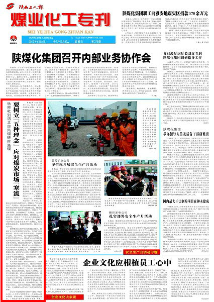 在調(diào)研中,楊照乾客觀分析了煤炭行業(yè)“黃金十年”的狀況,并對當(dāng)前煤炭產(chǎn)能過剩情況及煤炭市場未來發(fā)展形勢進(jìn)行了詳細(xì)剖析,對各家企業(yè)今后的發(fā)展提出了針對性的指導(dǎo)意見。楊照乾指出,沒有不過剩的產(chǎn)業(yè),沒有不飽和的產(chǎn)品,要科學(xué)認(rèn)識面對的困難,認(rèn)真研究今后的發(fā)展方向和發(fā)展方式,堅(jiān)定信心,共克時(shí)艱。集團(tuán)公司任何煤炭企業(yè)今后都必須以開采成本、煤炭品質(zhì)、有害成分、區(qū)位條件四個(gè)指標(biāo)分析測量自己的發(fā)展優(yōu)勢。他強(qiáng)調(diào),在煤炭行業(yè)完全市場化、國際化的當(dāng)下,一定要樹立“供過于求、市場經(jīng)濟(jì)常態(tài)化”的理念,積極應(yīng)對市場的殘酷變化;要樹立“只有靠自己”的理念,通過內(nèi)因解決問題,把有限的資金用到優(yōu)化礦井發(fā)展方面,提高經(jīng)濟(jì)運(yùn)行質(zhì)量,確保發(fā)展穩(wěn)定;要樹立“全員抓管理、全員渡難關(guān)”的理念,充分調(diào)動(dòng)全員參與管理的積極性,群策群力,共渡難關(guān);要樹立“市場經(jīng)濟(jì)不相信眼淚”的理念,提高認(rèn)識,轉(zhuǎn)變觀念;要樹立“競爭性行業(yè)提高競爭力”的理念,優(yōu)化調(diào)整發(fā)展體制,轉(zhuǎn)換經(jīng)營機(jī)制,提升企業(yè)競爭力。