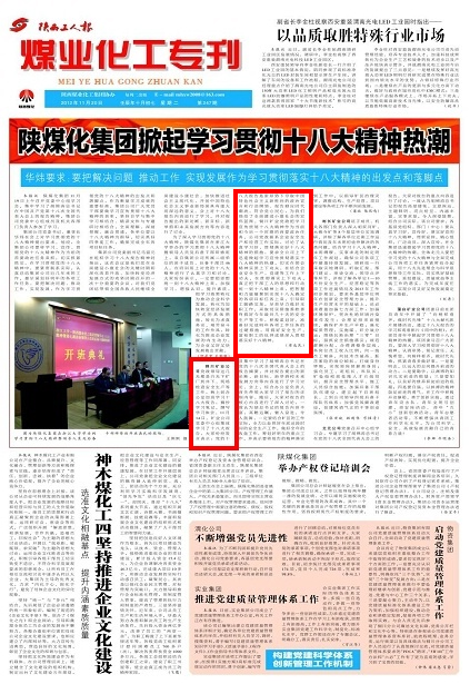 銅川礦業(yè)公司黨政領(lǐng)導(dǎo)這幾天都是白天下礦廠到井下、現(xiàn)場(chǎng)檢查安全生產(chǎn)等工作,晚上到辦公室加班學(xué)習(xí)十八大報(bào)告,摘抄學(xué)習(xí)筆記,撰寫學(xué)習(xí)體會(huì)。11月14日,礦業(yè)公司黨委中心組集體學(xué)習(xí)了十八大報(bào)告,大家紛紛發(fā)言表示:黨的十八大報(bào)告是新形勢(shì)下奪取中國(guó)特色社會(huì)主義新勝利的政治宣言和行動(dòng)綱領(lǐng)。報(bào)告順應(yīng)時(shí)代潮流,符合黨心民心,為我們描繪了全面建成小康社會(huì)的宏偉藍(lán)圖。銅川礦業(yè)黨政把學(xué)習(xí)宣傳貫徹十八大精神作為當(dāng)前和今后一個(gè)時(shí)期的首要政治任務(wù),公司黨政聯(lián)系企業(yè)安全生產(chǎn)和經(jīng)營(yíng)工作實(shí)際,討論了認(rèn)真學(xué)習(xí)好、貫徹落實(shí)好十八大精神的措施,要求全公司上下迅速掀起學(xué)習(xí)宣傳貫徹落實(shí)十八大精神的熱潮,切實(shí)在領(lǐng)會(huì)精神實(shí)質(zhì)上下功夫,在結(jié)合企業(yè)安全生產(chǎn)、黨建等工作上下功夫,在貫徹落實(shí)上下功夫,真正把干部工人的思想和行動(dòng)統(tǒng)一到十八精神上來(lái),把智慧和力量凝聚到實(shí)現(xiàn)十八大確定的各項(xiàng)目標(biāo)任務(wù)上來(lái),引導(dǎo)職工腳踏實(shí)地,盡責(zé)盡力做好本職工作,采取切實(shí)措施善始善終搞好今年最后幾十天的安全生產(chǎn)等工作,積極謀劃好、準(zhǔn)備好完成明年各項(xiàng)工作任務(wù)的過(guò)硬措施,用搞好安全生產(chǎn)、富裕職工的優(yōu)異成績(jī)深入貫徹落實(shí)好十八精神。