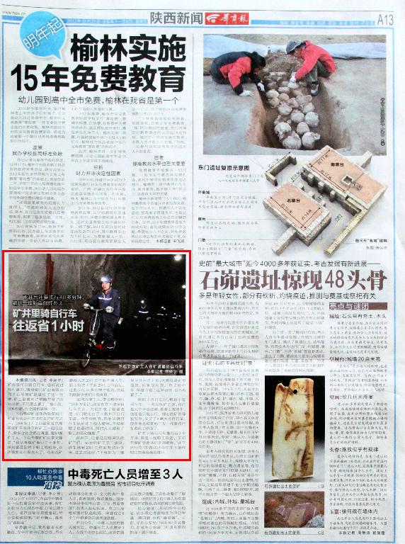 剛配上自行車時,都是小型自行車,一名馬姓礦工說,自己是大個子沒法騎,看著工友騎車,他還是只能步行。細(xì)心的礦領(lǐng)導(dǎo)發(fā)現(xiàn)后,又買了8輛大號自行車,現(xiàn)在他也和其他工友一樣騎自行車進(jìn)出工作面了。