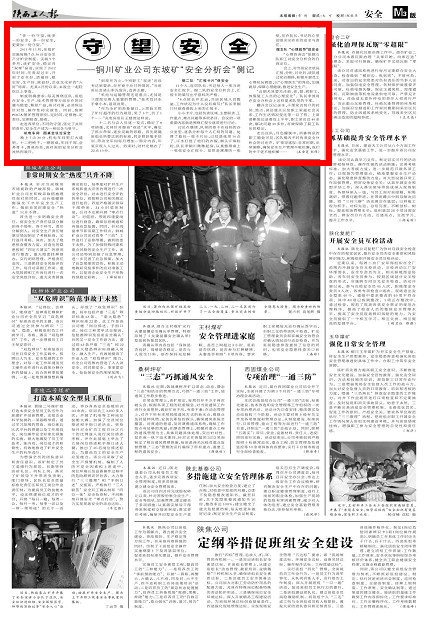 “多一份守望,就多一份安全。多一份安全,更要加一份守望。”2011年11月,東坡礦實(shí)施每晚7點(diǎn)30分安全生產(chǎn)分析會制度。實(shí)踐9個多月,該礦安全、穩(wěn)定向“雙零”奮進(jìn),實(shí)現(xiàn)了2012年時(shí)間、任務(wù)雙過半,開創(chuàng)了安全好、質(zhì)量好、穩(wěn)定好、生產(chǎn)好、效益好、企業(yè)文化好的“六好”局面。尤其6月份以來,未發(fā)生一起輕傷以上事故。