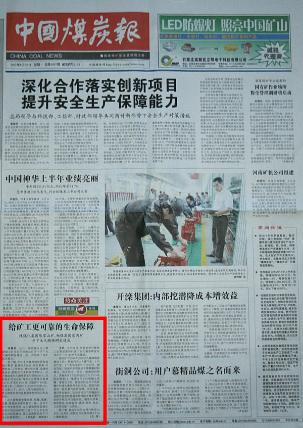 中國(guó)煤炭報(bào) 2012年8月27日 頭版