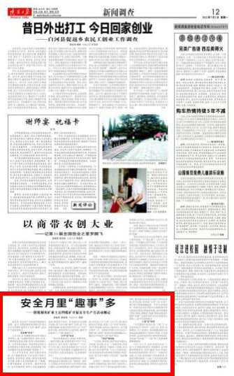 陜西日報 2012年7月2日 第十二版 (席選民 彎桂清 本報記者 程剛)連日來,安全生產月活動開展得如火如荼。這不,在陜西煤化集團銅川礦業(yè)公司王石凹煤礦就發(fā)生了幾件“趣事”,成為礦工談論的焦點。安全帽“實名”