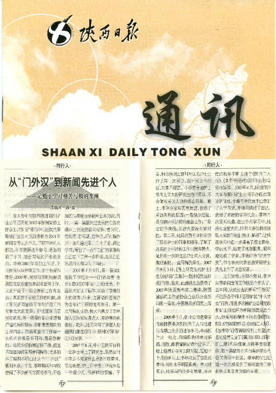 2009年7月,礦業(yè)公司黨委宣傳部推薦李琳到陜西工人報(bào)社進(jìn)行為期三個(gè)月的進(jìn)修學(xué)習(xí),李琳抓住這一機(jī)會(huì),向編輯老師學(xué)習(xí)編稿、劃版,跟著編輯記者外出采訪,晚上經(jīng)常自學(xué)和加班寫(xiě)稿,短短三個(gè)月的學(xué)習(xí),讓李琳收獲了寶貴的養(yǎng)料,寫(xiě)作水平明顯提高。學(xué)習(xí)結(jié)束后,她采寫(xiě)的很多有質(zhì)量、有深度的稿件不斷見(jiàn)諸陜西工人報(bào)、各界導(dǎo)報(bào)和銅川日?qǐng)?bào)等省市媒體。