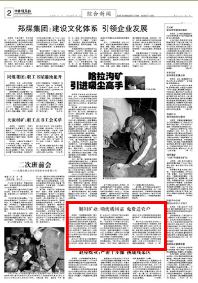 銅川礦業(yè)公司東坡礦去年投入2萬元為柳林溝村購買了核桃樹苗,為柳林后溝村鋪路、修橋,出動2臺鏟車,用3天時間為村子搶修了2公里的生產道路。徐家溝礦為徐家溝村修復了去年被洪水沖斷的道路,并對養(yǎng)殖戶進行扶持。王石凹礦今年春節(jié)前為柳樹臺村的30戶貧困農民家庭每戶送去了300元慰問金。玉華選煤廠為烈橋村修復道路1.3公里,為村子聯系購買了20公頃矮化核桃樹苗。