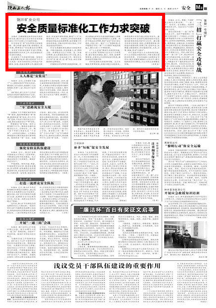 本報(bào)訊(劉孝文)為確保既定各項(xiàng)目標(biāo)任務(wù)的全面完成,銅川礦業(yè)公司力爭在安全質(zhì)量標(biāo)準(zhǔn)化工作中實(shí)現(xiàn)七個(gè)方面的突破。