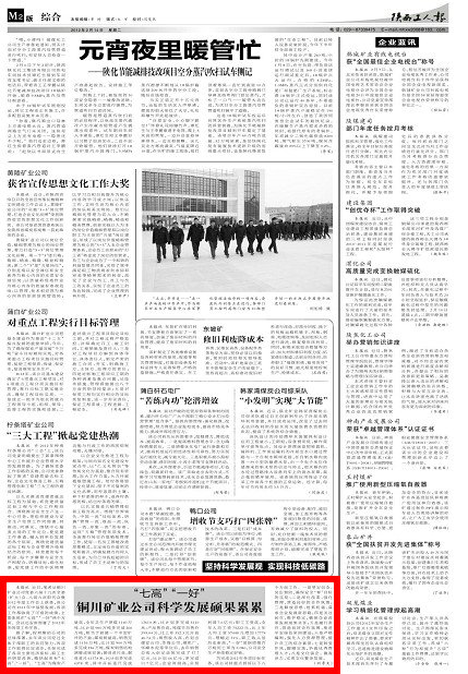 據(jù)了解,按照集團公司的總體部署,去年該公司經(jīng)過全體干部職工的共同努力,各項工作取得長足進步,全面完成了各項主要經(jīng)濟指標,職工生活明顯改善,概括起來有“七高”、“一好”?!捌吒摺睘槊禾慨a(chǎn)量高,全年共生產(chǎn)原煤1160萬噸,比計劃900萬噸多完成260萬噸,相當于新建一個中型礦井的產(chǎn)量;煤炭銷量高,銷售完成1156萬噸,比計劃900萬噸多完成256萬噸,煤炭銷售結(jié)構(gòu)調(diào)整成效顯著;掘進進尺高,掘進進尺61378米,比計劃多完成4378米,其中開拓進尺完成13610米,比計劃多完成5110米;產(chǎn)品售價高,噸煤平均售價399.04元,比上年352.3元升高46.74元;銷售收入高,在劃出建安公司、華瑞公司、煤機廠、華峰水泥等單位后,去年銷售總收入創(chuàng)記錄地完成了57.7億元,比計劃46億元,多完成11.7億元;企業(yè)利潤高,實現(xiàn)利潤7.6億元;職工工資高,全年人均工資75222元,比上年人均工資57448元增加17774元,增幅達31%,職工收入創(chuàng)歷史新高。“一好”是指原煤百萬噸死亡率為0.086,公司安全生產(chǎn)持續(xù)穩(wěn)定好轉(zhuǎn)。