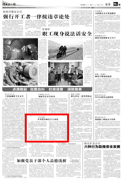本報(bào)訊(白樂)新年伊始,下石節(jié)煤礦始終堅(jiān)持安全“零”目標(biāo)不動(dòng)搖,加大安全管理力度,強(qiáng)化現(xiàn)場(chǎng)管理,落實(shí)各項(xiàng)安全責(zé)任制度,多舉措打響年初安全主動(dòng)仗。