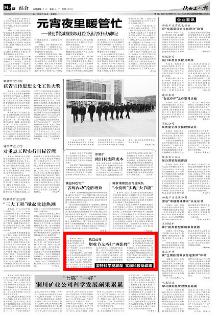 本報訊(耿妮妮)鴨口公司本著“堵漏挖潛,提高效益”的原則,在增收節(jié)支具體工作中,巧打“四張牌”,切實(shí)把增收節(jié)支工作落到了實(shí)處。