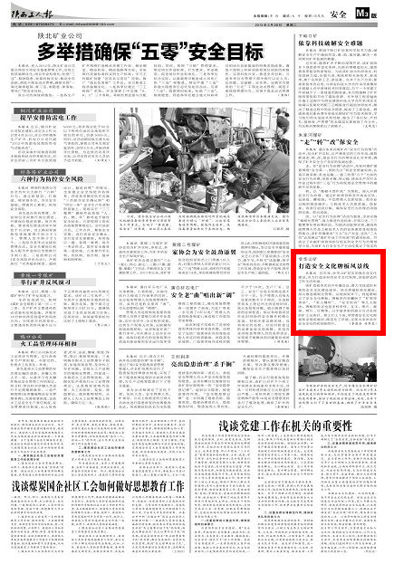 本報訊(李勝會 付軍亮)近年來,金華山礦切實加強企業(yè)文化建設(shè),全力打造良好的安全文化氛圍,創(chuàng)造舒適的工作生活環(huán)境。