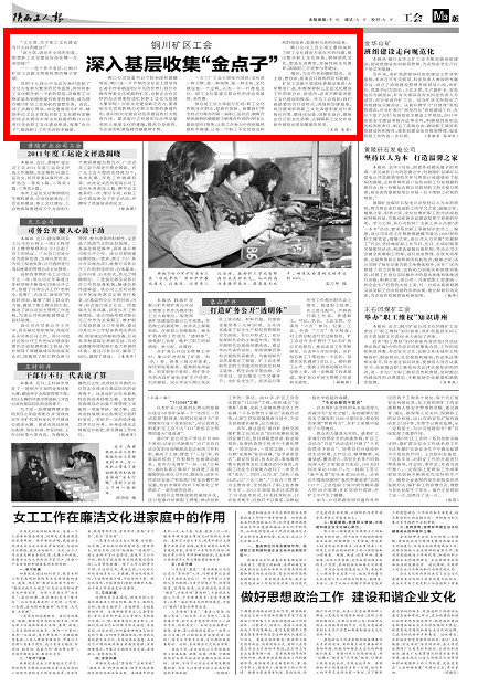 礦區(qū)工會(huì)副主席梁桂香激動(dòng)地說:大家集思廣益,積極探索職工企業(yè)文化建設(shè)工作的新方法、新途徑,必將不斷促進(jìn)職工文化建設(shè)的提高。作為工會(huì)組織,我們就是要結(jié)合行業(yè)特點(diǎn),因地制宜建基地,將分散零碎的職工文化表演積累進(jìn)行系統(tǒng)化歸類、整體化包裝、創(chuàng)新化設(shè)計(jì),提煉出自己的文化品牌,讓銅煤職工文化在創(chuàng)新中展現(xiàn)出更加靚麗的風(fēng)采。
