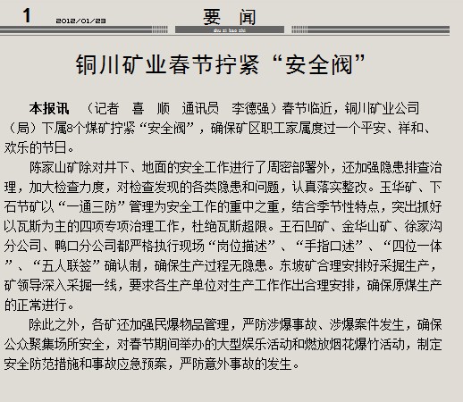 上一條:陜西日?qǐng)?bào):王石凹礦出臺(tái)保勤措施保春節(jié)電煤供應(yīng) 下一條:陜西日?qǐng)?bào):銅川礦業(yè)公司800余萬元確保貧困黨員和群眾過春節(jié)
