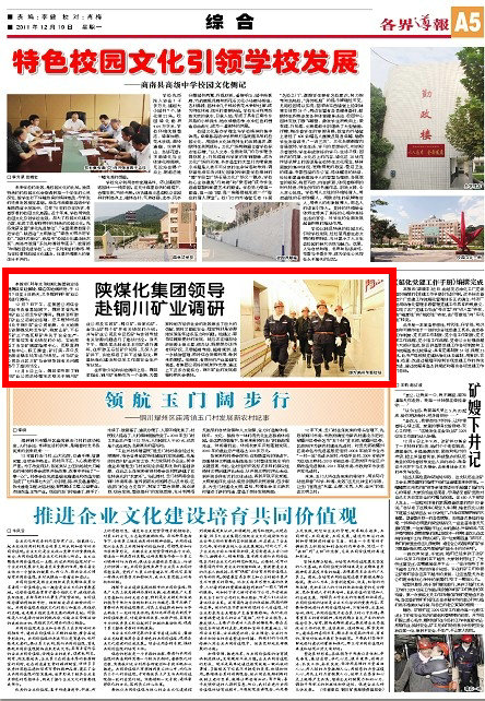 在聽取介紹和實地調(diào)研之后,魏鐵軍指出,銅川礦務(wù)局作為一個老局,為國家和地方經(jīng)濟社會的發(fā)展做出了巨大的貢獻,同時又面臨安全、穩(wěn)定特別是資源接續(xù)緊張等諸多壓力和問題。他建議,要持續(xù)健康更好的發(fā)展,就應(yīng)該在增加經(jīng)濟資源上做文章,想辦法,既要想辦法持有探礦權(quán),又要超前考慮,超前規(guī)劃,進一步精細(xì)管理,抓好綜合資源利用,做到未雨綢繆。他相信,有良好的產(chǎn)業(yè)基礎(chǔ)作奠基,有集團公司好的機制作支撐,通過上下及多方面努力,銅川礦業(yè)的發(fā)展前景和明天會更好。