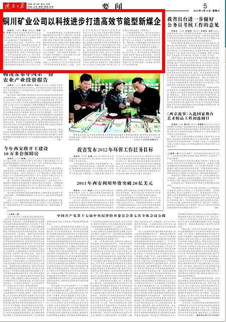 本報訊依靠科技進步讓銅川礦業(yè)公司插上了高效、節(jié)能的翅膀,去年,該公司完成節(jié)能2150噸標煤,萬元產(chǎn)值能耗下降7.6%,超額完成了節(jié)能減排任務(wù)。