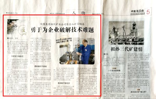 正是憑著這種主動鉆研、鍥而不舍的學習精神,呂銅喜終于練就了一身過硬的本領取得了鉗工高級技工證書,并且在銅川礦業(yè)公司2018年職工職業(yè)技能大賽礦井維修鉗工的比賽中取得了第一名,榮獲“技術狀元”榮譽稱號。