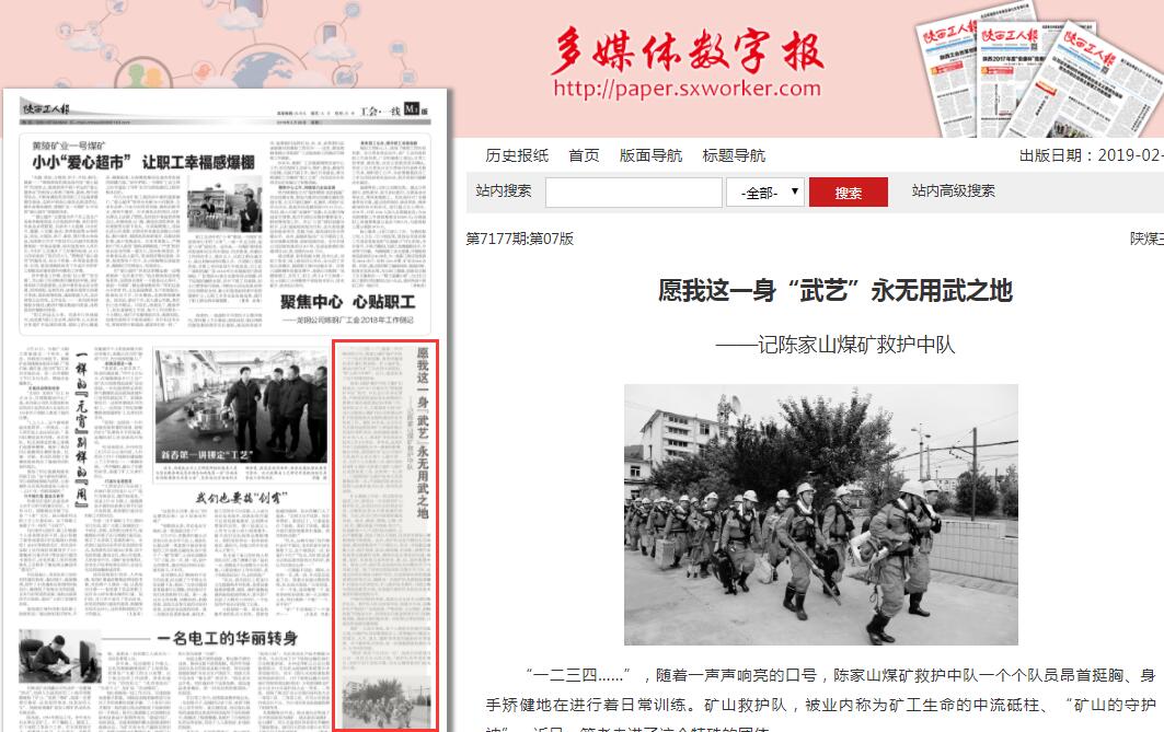 陳家山煤礦救護(hù)中隊(duì)于建礦初期成立,1997年7月被評(píng)為“特級(jí)救護(hù)中隊(duì)”稱號(hào),中隊(duì)實(shí)行軍事化管理,嚴(yán)格按照質(zhì)量標(biāo)準(zhǔn)化和精細(xì)化管理方案開展質(zhì)量達(dá)標(biāo)考核工作,現(xiàn)有隊(duì)員37名,主要服務(wù)于銅川礦業(yè)公司陳家山煤礦和公司所屬兄弟礦井的搶險(xiǎn)救災(zāi)支援和預(yù)防性安全檢查工作。建隊(duì)39年來,這支隊(duì)伍先后參加處理各類礦山事故和地方突發(fā)性事件多次,搶救遇險(xiǎn)遇難人員40余人以上,參加礦井各類安全技術(shù)工作100多次。多年來,這支隊(duì)伍在7支救援隊(duì)伍中一路披荊斬棘、摘金奪銀,獲得銅川礦業(yè)公司救護(hù)大隊(duì)救護(hù)比武儀器個(gè)人操作第一名、比武個(gè)人全能第三名;銅川國家區(qū)域礦山救護(hù)大隊(duì)第六屆礦山救護(hù)比武團(tuán)體第三名、業(yè)務(wù)第一名;第二、三屆陜西礦山救護(hù)技術(shù)比武競賽集體第一名;代表陜西隊(duì)參加全國第九屆救護(hù)技術(shù)比武,獲得優(yōu)異成績。
