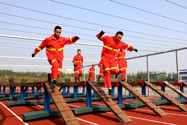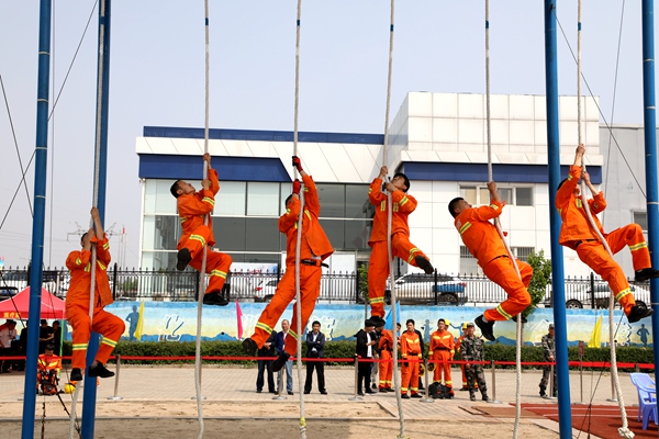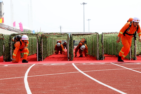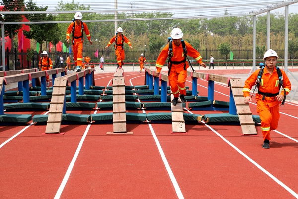 上午8時整,綜合體能賽拉開戰(zhàn)幕。參賽隊員秩序井然、精神抖擻,6人一組,在完成高空爬繩后,迅速背起近二十公斤的呼吸器進(jìn)行千米奔跑,并要在途中穿越長15米的獨(dú)木橋,爬過20米的低巷,到達(dá)終點(diǎn)完成綜合體能競技的各項(xiàng)內(nèi)容。競賽中,各參賽隊的隊員以有力的攀繩動作,越橋的矯健身影,鉆巷的快捷熟練,奔跑的健步如飛,彰顯著救護(hù)隊員的奮斗精神和戰(zhàn)斗風(fēng)貌。