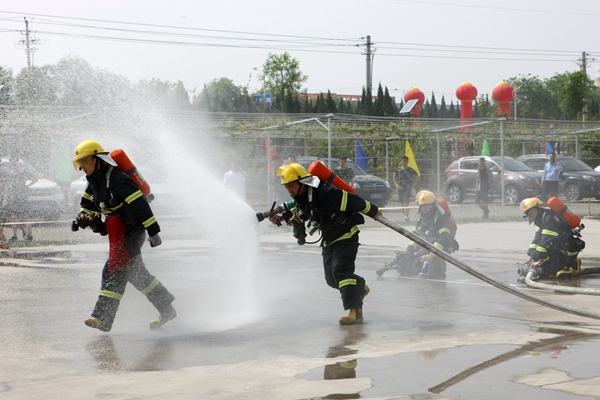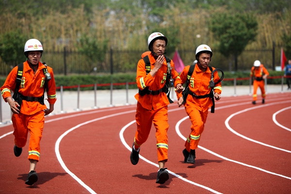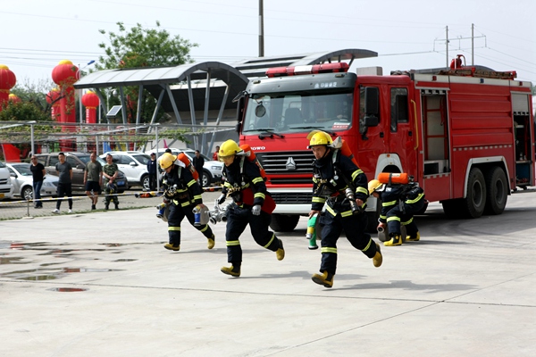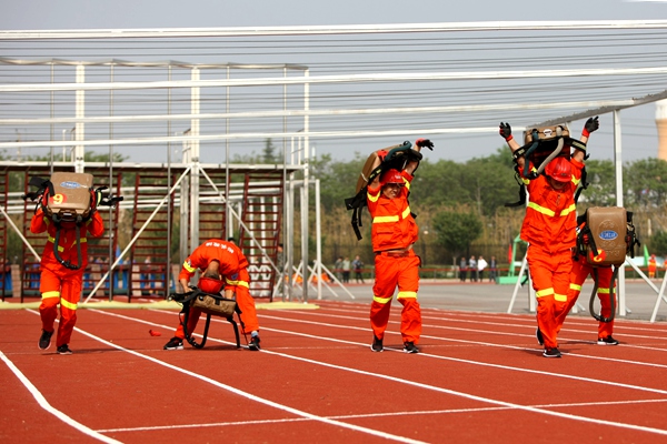 在消防模擬救災(zāi)比賽中,隨著指令發(fā)出,警笛鳴響,參賽的救護(hù)隊員備齊裝備、快速集結(jié),風(fēng)馳電掣地登上救援車輛迅速趕赴救援現(xiàn)場,在團(tuán)結(jié)奮戰(zhàn)和熟練操作中相繼完成火災(zāi)救援處置任務(wù)。