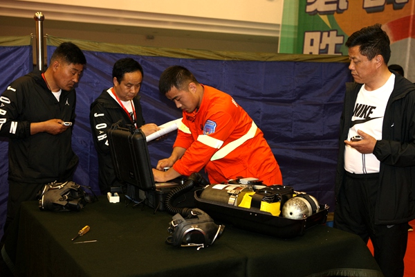 25日,模擬井下救災(zāi)項(xiàng)目拉開戰(zhàn)幕,競技隊員需在60分鐘內(nèi),完成氣體檢測、頂板檢測、風(fēng)量檢測、井下滅火、恢復(fù)通風(fēng)、災(zāi)區(qū)探查、搜救失蹤人員、解救遇險人員等任務(wù),同時對災(zāi)區(qū)情況進(jìn)行詳細(xì)記錄、標(biāo)注,及時準(zhǔn)確地將信息反饋給救災(zāi)指揮部,并安全地返回到井下基地。同日,綜合訓(xùn)練館內(nèi)醫(yī)療個人CPR和綜合技能也在緊張進(jìn)行中。