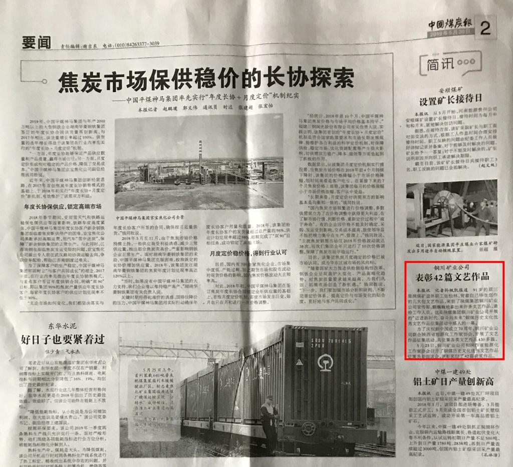 為了慶祝新中國(guó)成立70周年,銅川礦業(yè)公司聯(lián)合陜西省能源化工作家協(xié)會(huì),開展了文藝作品征集活動(dòng),共征集各類文藝作品430多篇。5月23日,銅川礦業(yè)公司和陜西省能源化工作家協(xié)會(huì)召開了銅煤歷史文化優(yōu)秀文藝作品征集表彰座談會(huì),表彰獎(jiǎng)勵(lì)了42篇獲獎(jiǎng)作品。