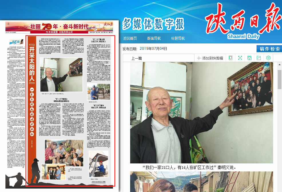陜煤銅川礦務(wù)局下石節(jié)煤礦的秦明義老人一家,祖孫21人,有14人在煤礦工作過(guò)。他們先后從事過(guò)不同崗位的煤礦工作,有的已經(jīng)退休,有的還在堅(jiān)守。他們不改初心,堅(jiān)守在平凡的崗位上,把青春和熱血獻(xiàn)給鐘愛的煤炭事業(yè),用奮斗詮釋最美人生底色。
