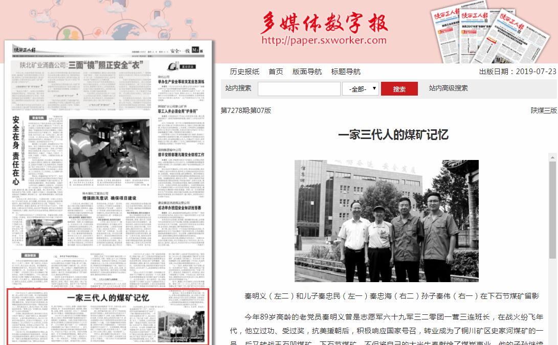 如今,耄耋之年的秦明義依舊精神矍鑠。秦家三代二十二口人,其中有十四人都相繼從事了煤礦工作,他們堅守在平凡的崗位上,兢兢業(yè)業(yè),攻堅克難,無怨無悔,這是他們繼承祖輩初心、實干興業(yè)的最佳印證。