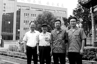 秦明義(左二)和兒子秦忠民(左一)秦忠海(右二)孫子秦偉(右一)在下石節(jié)煤礦留影