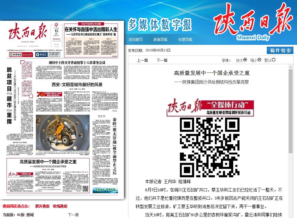 陜西日報(bào)(頭版):高質(zhì)量發(fā)展中一個(gè)國企承受之重——陜煤集團(tuán)踐行供給側(cè)結(jié)構(gòu)性改革觀察