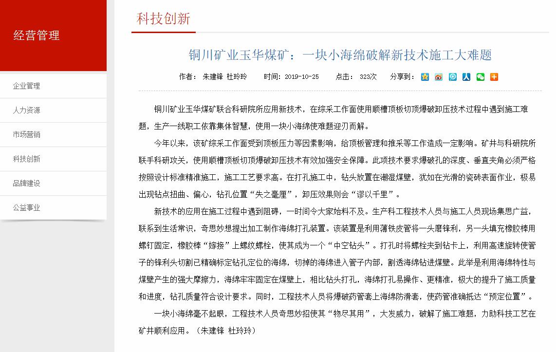 銅川礦業(yè)玉華煤礦:一塊小海綿破解新技術(shù)施工大難題