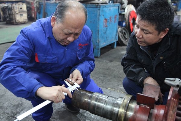 “有問題,找大師”只要遇到技術(shù)難題,大家第一時間就會想到大師老黃,來到工作室,尋找解決問題的辦法。一次,生產(chǎn)礦井在用刮板機減速機突然“趴窩”,直接影響到整個生產(chǎn)工作面,幾個維修工圍著設(shè)備轉(zhuǎn)圈,就是找不出毛病,面對近八噸重大小的設(shè)備是看在眼里,急在心里。老黃帶領(lǐng)工作室一幫人仔細檢查測量部件尺寸,一遍遍分析故障原因,反復翻閱相關(guān)圖紙,一個多小時就處理完了設(shè)備故障,在場的工友們紛紛投來贊許的目光。
