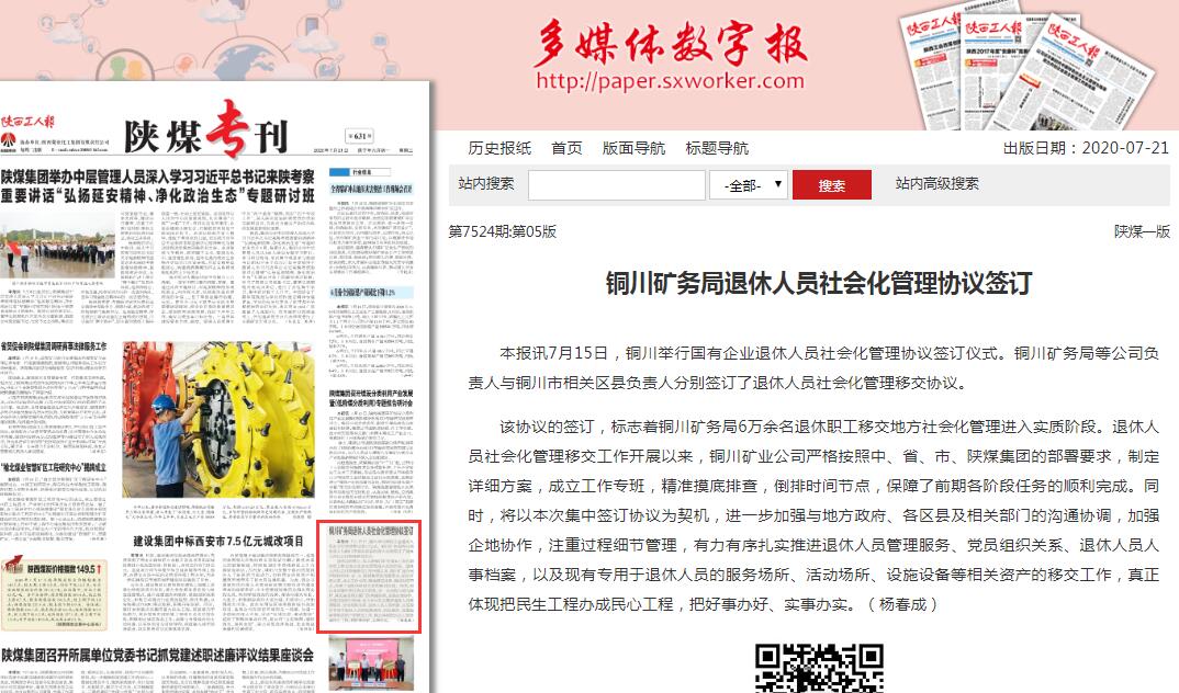 銅川礦務(wù)局退休人員社會化管理協(xié)議簽訂