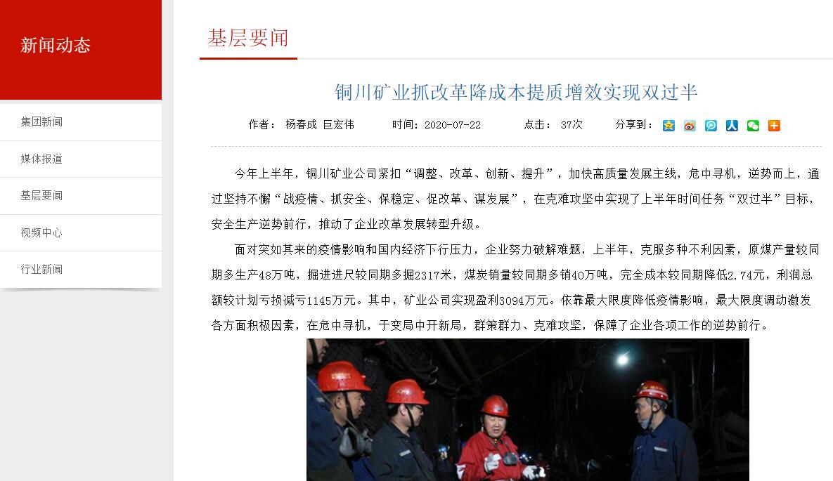 今年上半年,銅川礦業(yè)公司緊扣“調(diào)整、規(guī)范、創(chuàng)新、提升”,加快高質(zhì)量發(fā)展主線,危中尋機,逆勢而上,通過堅持不懈“戰(zhàn)疫情、抓安全、保穩(wěn)定、促改革、謀發(fā)展”,在克難攻堅中實現(xiàn)了上半年時間任務(wù)“雙過半”目標,安全生產(chǎn)逆勢前行,推動了企業(yè)改革發(fā)展轉(zhuǎn)型升級。
