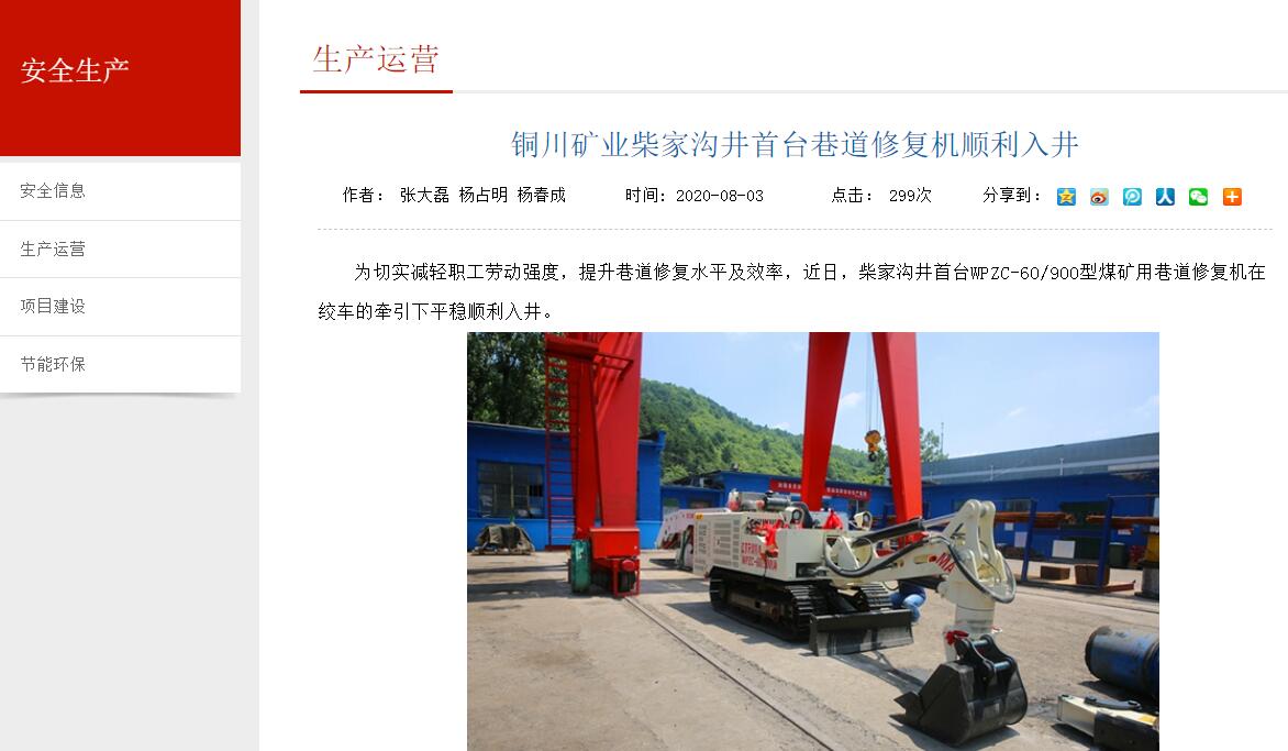 為切實(shí)減輕職工勞動(dòng)強(qiáng)度,提升巷道修復(fù)水平及效率,近日,柴家溝井首臺(tái)WPZC-60/900型煤礦用巷道修復(fù)機(jī)在絞車的牽引下平穩(wěn)順利入井。