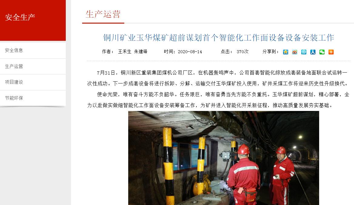 銅川礦業(yè)玉華煤礦超前謀劃首個智能化工作面設(shè)備設(shè)備安裝工作