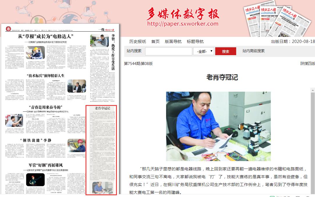 “那幾天腦子里想的都是電器線路,晚上回到家還要再翻一遍電器維修的書籍和電路圖紙,和同事交流三句不離電,大家都說我被電‘打’了,技能大賽練的是真本事,雖然有些疲憊,但很充實!”近日,在銅川礦務局欣盛煤機公司生產(chǎn)技術部的工作例會上,筆者見到了奪得年度技能大賽電工第一名的肖建峰。