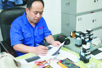肖建峰干脆放下手中工具,張開雙臂扭了扭腰,讓緊張的情緒逐漸平復。再一次仔細看看圖紙,保證每一步精準到位,一會斜口鉗、一會剝線鉗,最終配電盤接線準確橫平豎直……