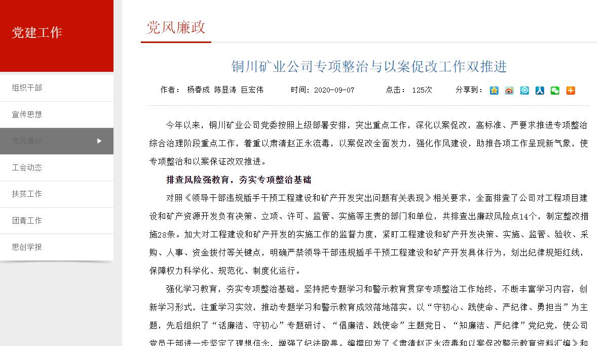 今年以來,銅川礦業(yè)公司黨委按照上級部署安排,突出重點工作,深化以案促改,高標(biāo)準(zhǔn)、嚴(yán)要求推進(jìn)專項整治綜合治理階段重點工作,著重以肅清趙正永流毒,以案促改全面發(fā)力,強(qiáng)化作風(fēng)建設(shè),助推各項工作呈現(xiàn)新氣象,使專項整治和以案保證改雙推進(jìn)。
