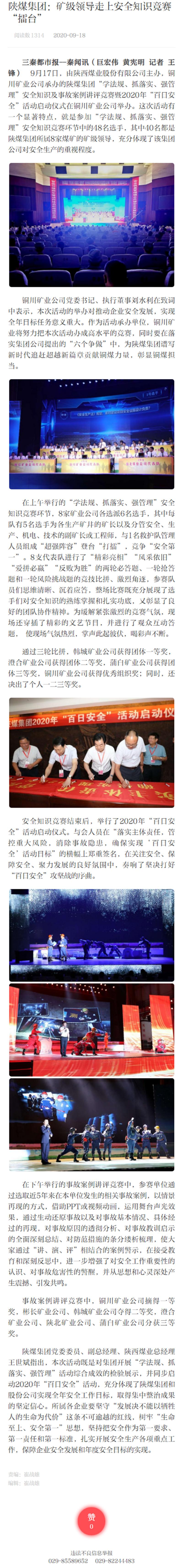 上一條:陜西日報微信| 陜煤集團(tuán)安全知識及事故案例講評競賽暨2020年“百日安全”活動啟動儀式在銅川舉行 下一條:集團(tuán)網(wǎng)| 銅川王石凹旅游公司為工業(yè)遺址項(xiàng)目建設(shè)注入綠色動能