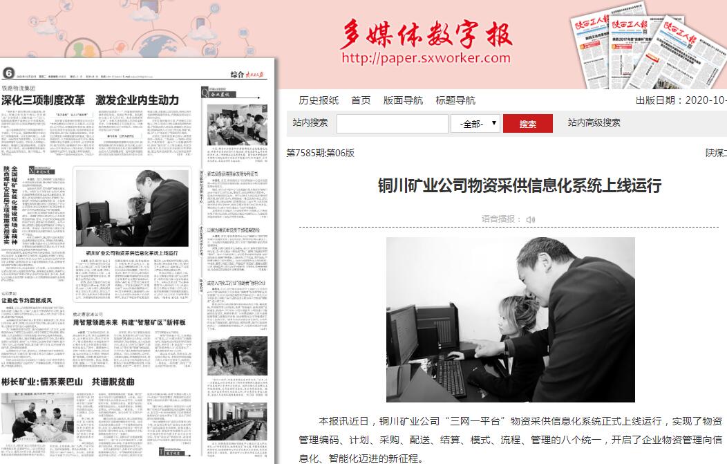 銅川礦業(yè)公司物資采供信息化系統(tǒng)上線運(yùn)行