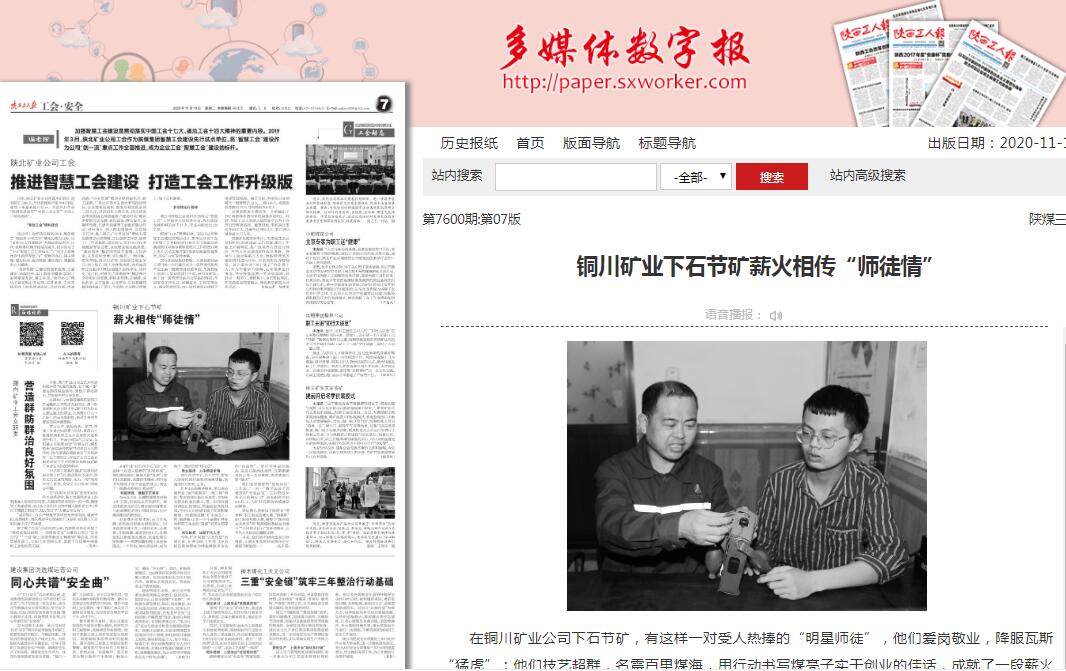 師徒倆先后參加了陜西省“澄合杯”職工職業(yè)技能大賽、“銅煤杯”職工職業(yè)技能大賽,被授予“陜西省技術(shù)狀元”和“陜西煤炭系統(tǒng)技術(shù)能手”“公司技術(shù)狀元”等多項(xiàng)殊榮,讓平凡人生綻放出耀眼光輝。