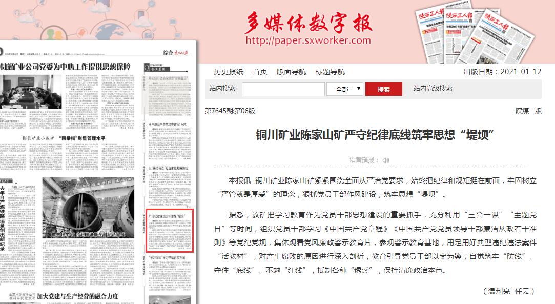 銅川礦業(yè)陳家山礦嚴(yán)守紀(jì)律底線筑牢思想“堤壩”